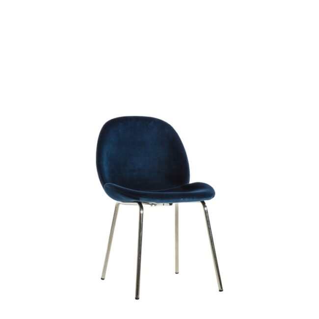 This dining chair offers simple, contemporary design, with its sleek seat and metal base. The lovely petrol blue velvet pairs perfectly with the silver finish of the base to give a chic elegant look. Available in four other colours, and there are also bar stools in three colours.