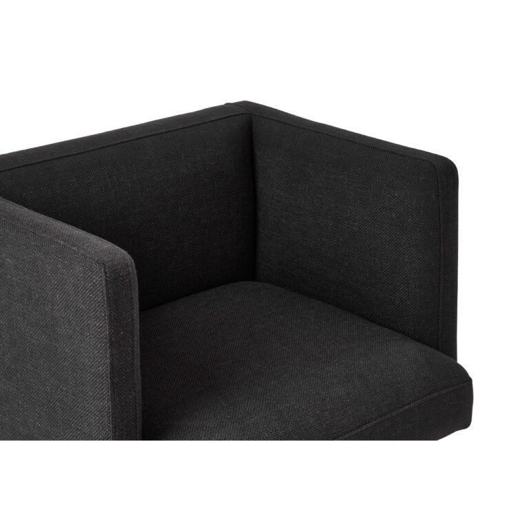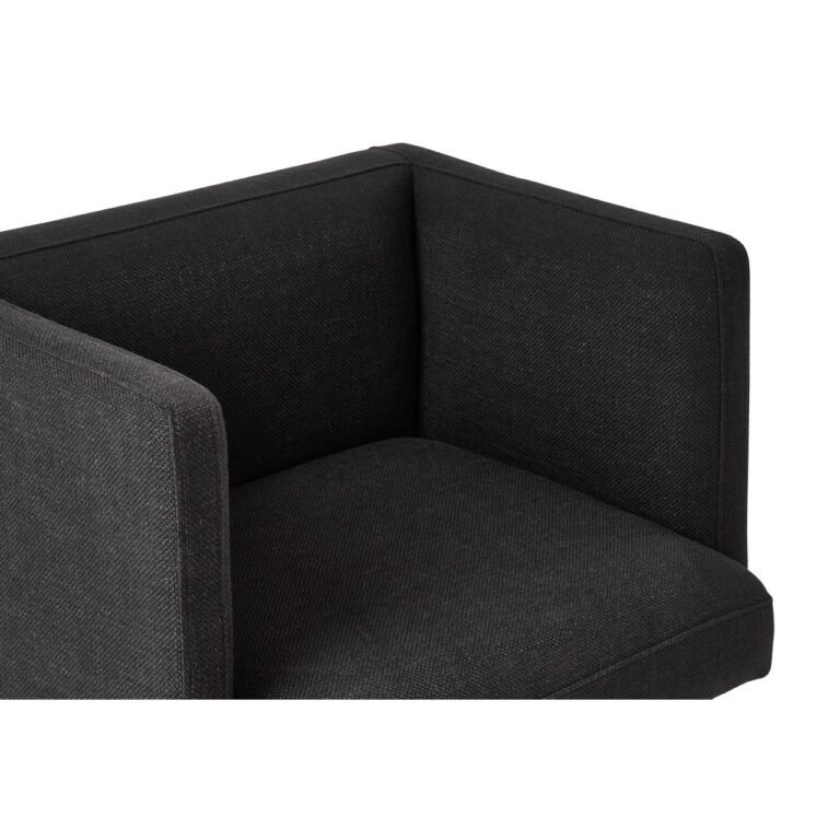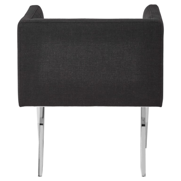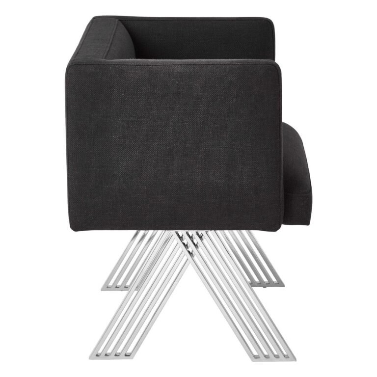 Piet Black Dining Chair: The seat is dressed in textured black fabric, and the design lines are restrained. Intersecting lines of stainless steel angle out beneath, with a silver finish that contrasts the fabric. Pair it with the Piet dining table.