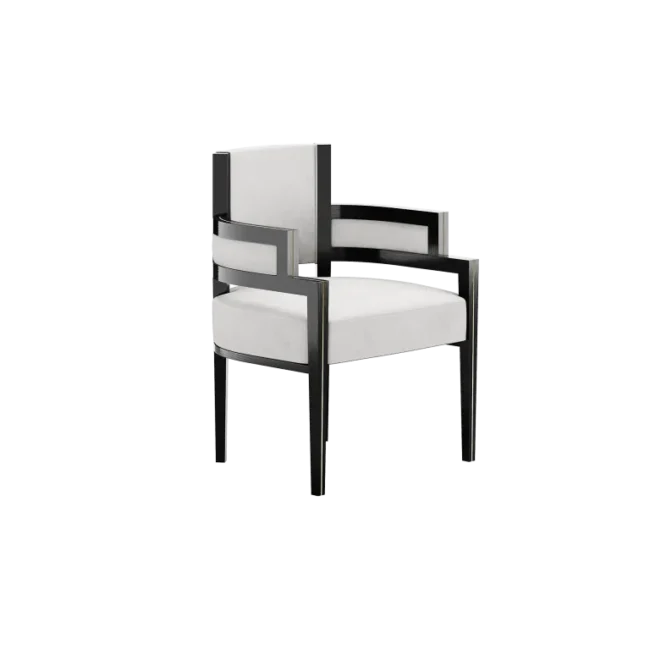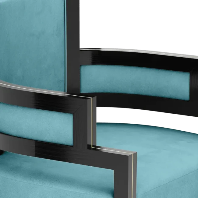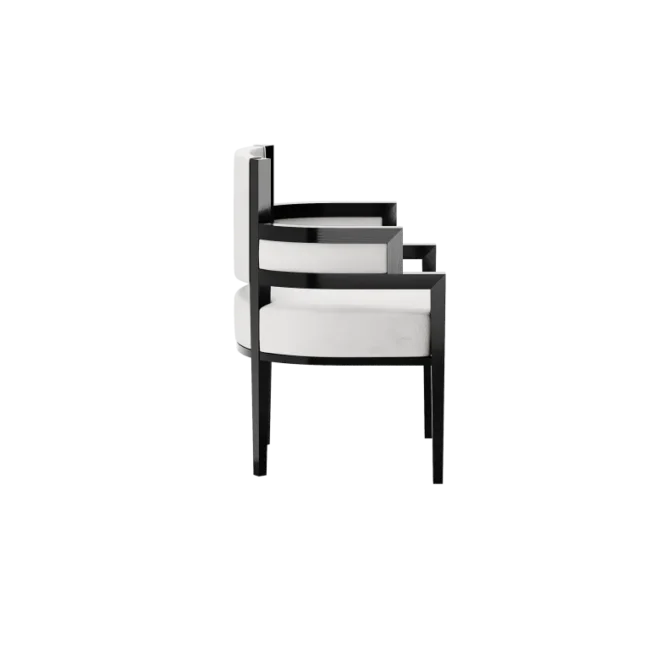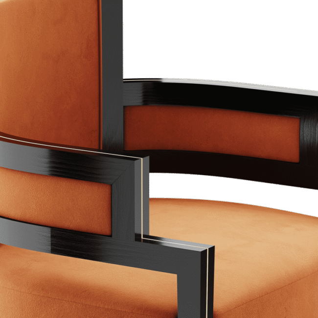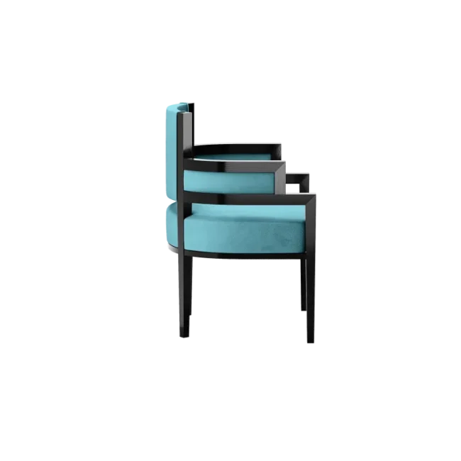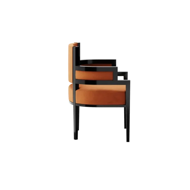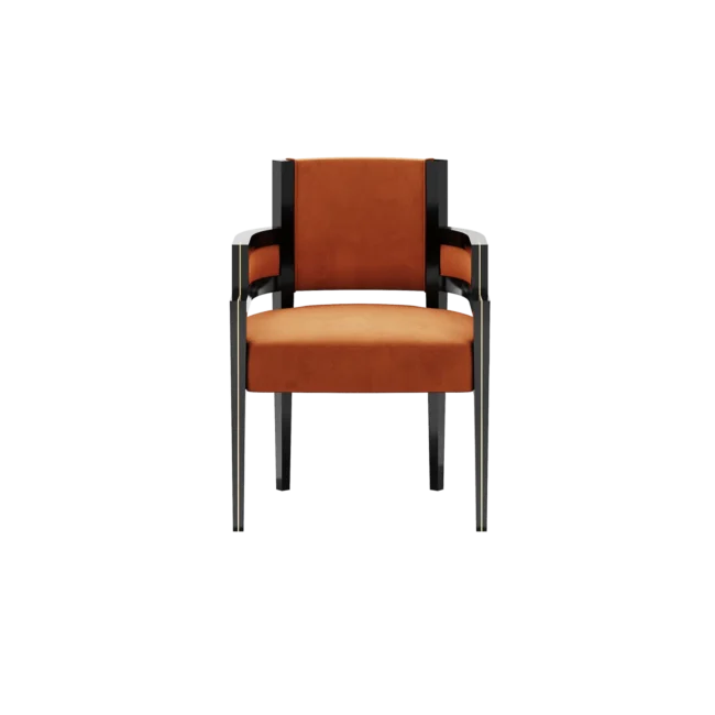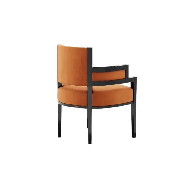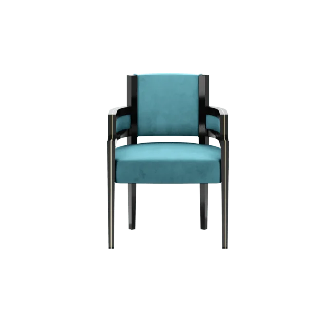 Pina dining Chair is an art deco-style dining chair whose shape provides the best comfort for guests—upholstered in velvet with a modern wood structure. Perfect for modern dining room projects that aim for a classic-chic vibe.