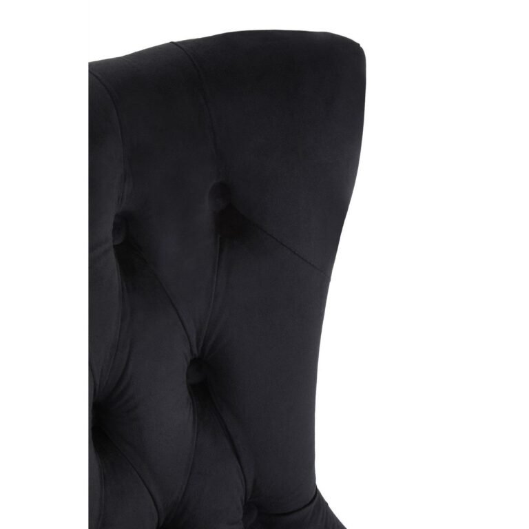 Regents Townhouse Black Buttoned Dining Chair: This black velvet dining chair features an hourglass back decorated with button tufting and is complemented with a plush, padded seat. Made from renewable rubberwood, antique finish legs offer rustic contrast to the luxe velvet textures.