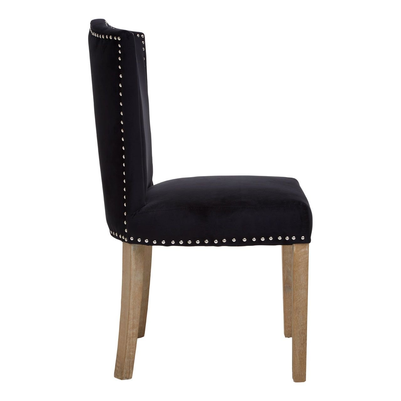 Regents Townhouse Black Dining Chair: This dining chair is handcrafted and complete with a sumptuous foam padded seat upholstered in black velvet. Fashioned with nailhead trim, this dining chair is supported by tapered wood legs and back, and it blends easily in modern and traditional home decors.