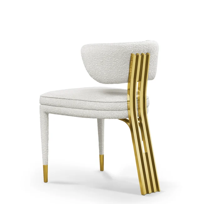 The Talie Dining Chair breathes life into movements like Art Deco and mid-century, reshaping the dining scene with its thought-provoking design. Inspired by the natural architecture of Frank Lloyd Wright, it features accentuated details such as its arched backrest and brass build reminiscent of a forte. Evoking modernity at its finest, the Talie Dining Chair is a testament to progressive design.