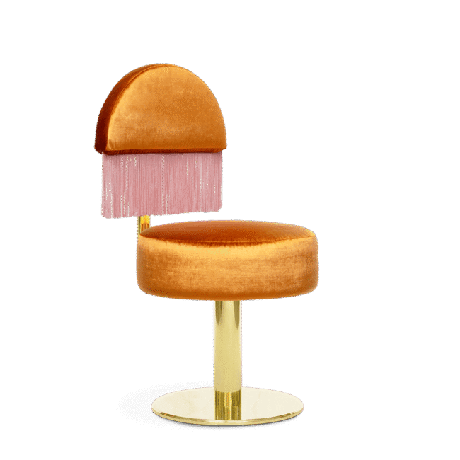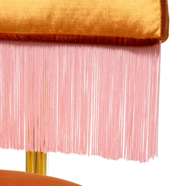 The Zsa Zsa dining chair immediately recalls the world of Burlesque, Zsa Zsa Gabor is the perfect exponent of this world. Our first thought? Fringes, strong color, and sensuality, three concepts that made “Moulin Rouge” one of the most iconic movies in the 50s.