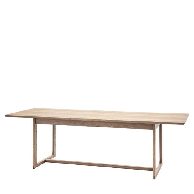 Crafted from the finest oak and structural oak veneers where practical, this stunning extending dining table pairs perfectly with the matching dining bench or chairs. The table, which extends for added practicality, offers elegant design, with its simple top and beautifully shaped underframe. The wood has a lovely natural finish. The table is also available in a smoked oak finish, and matching pieces are available.