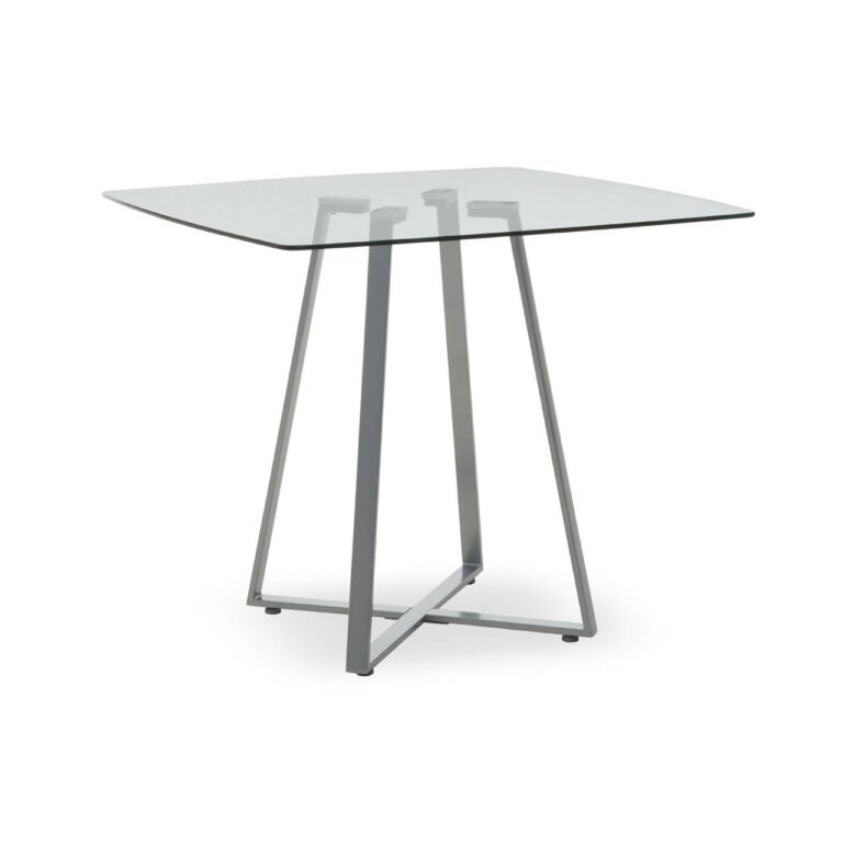 This table adds a luxe statement to the interior with its clean design. The X-shaped angular metal base of this table is given a matte grey finish, and it is topped with rectangular glass.