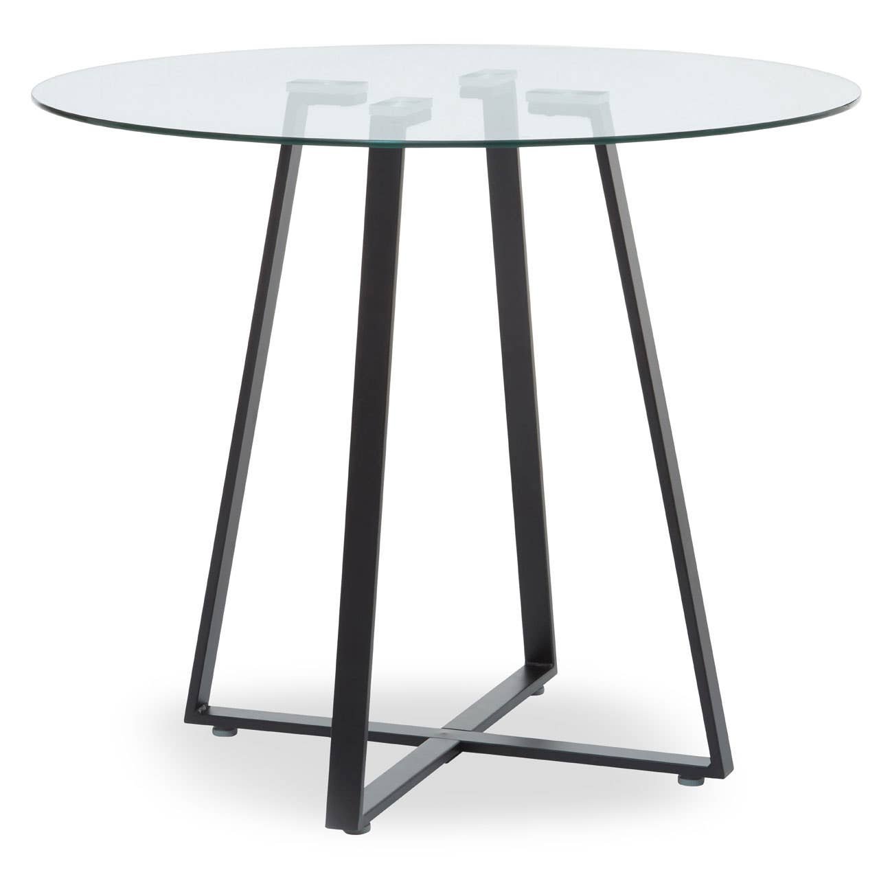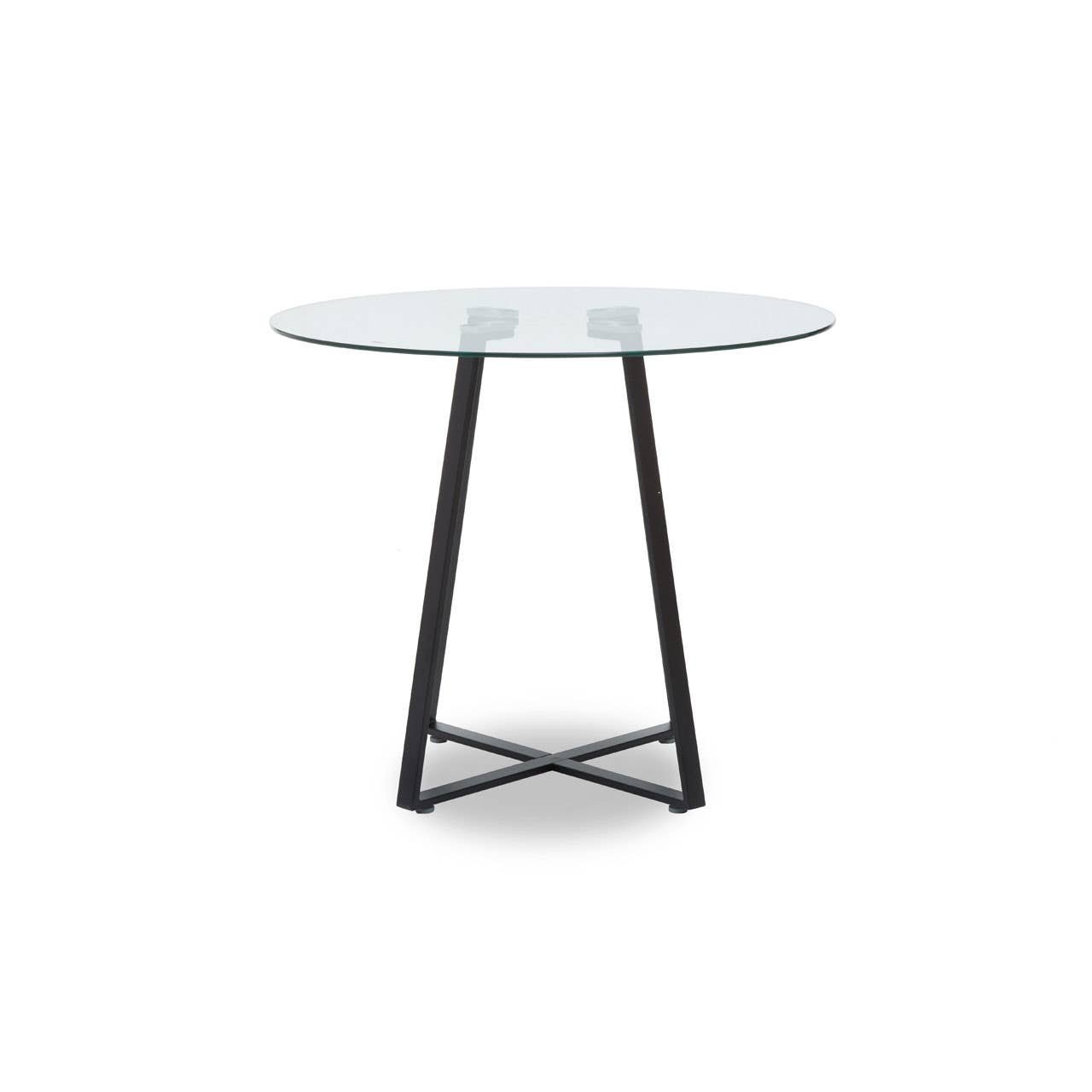 This dining table will bring an industrial and urban accent to the area with its angular design. Topped with a round glass top that sits neatly on a black matte iron frame, this dining table is supported by an X-shaped base for added support.