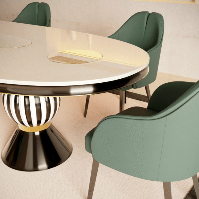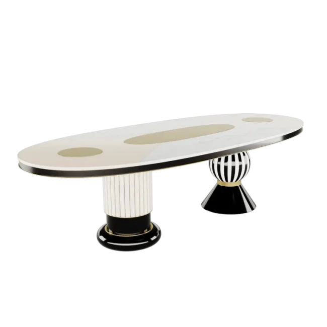 Fuschia Dining Table is a revivalism of the Memphis style’s charm and charisma. A contemporary dining table with a geometric design will make your high-end dining room unique. A statement modern dining table that your interior design project needs. Fuschia Dining Table