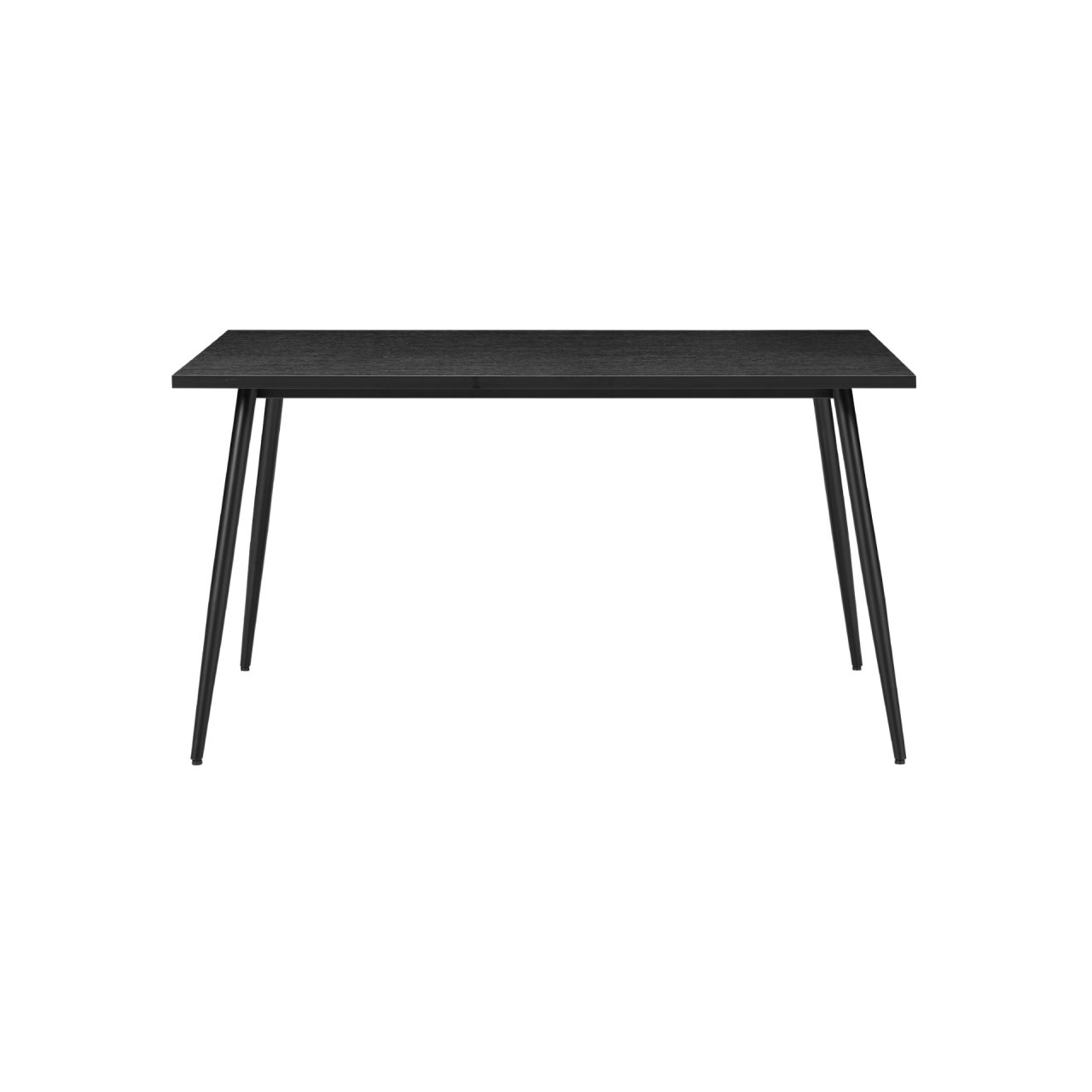 The Horizon Medium Dining Table is a stylish and practical choice for modern dining spaces, coming in oak or black woodgrain finishes to suit different interiors. It comfortably seats up to six diners. The matt black powder-coated metal legs taper outward, combining with the refined tabletop for a modern look. Built with high-quality, responsibly sourced materials, it offers a sustainable solution for compact dining areas.