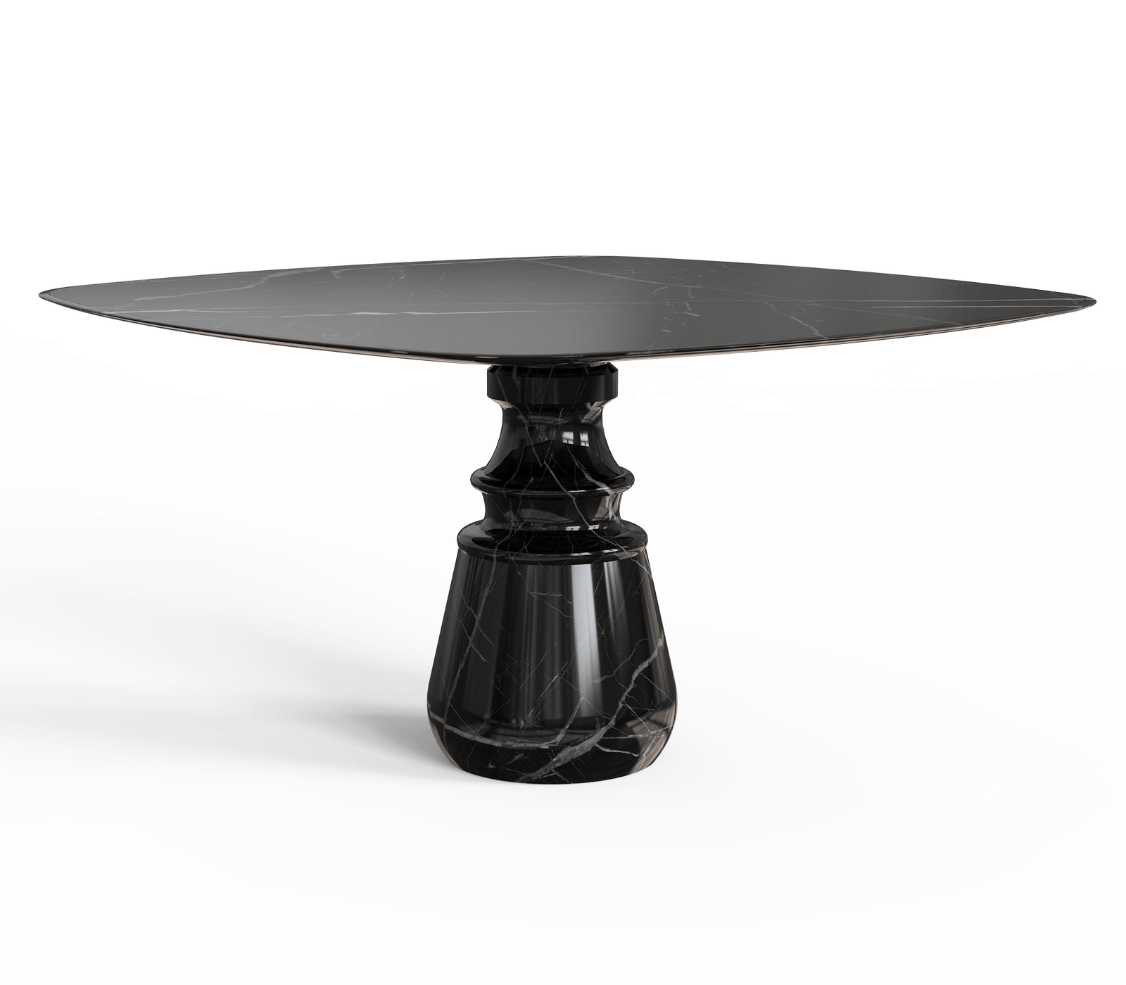 Playing with function and sculptural form, Pietra Square Dining Table shapes a timeless experience through its classical aura and finest Nero Marquina black marble. Reminding the renaissance era, its square top gently lies in one robust marble column, conceived from a solid block hand-sculpted and turned to create different details for additional texture. A noble material carved in Boca do Lobo workshops, conceiving a statement black table ideal for a grand entryway, elegant dining rooms or other open settings. Ideal as a four-seater table, the contemporary feel of Pietra is effortlessly stylish and it is suitable for indoor or outdoor use.