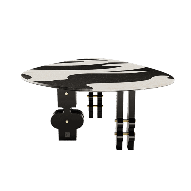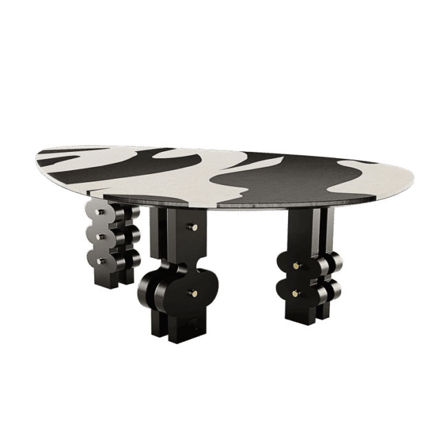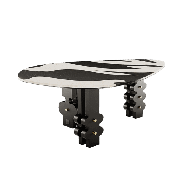 Sahara Dining Table was designed for conceptual art lovers. A modern dining table with bold legs and a stunning top with a geometric design. An oval shape dining table is perfect to be part of a statement dining room project’s set.