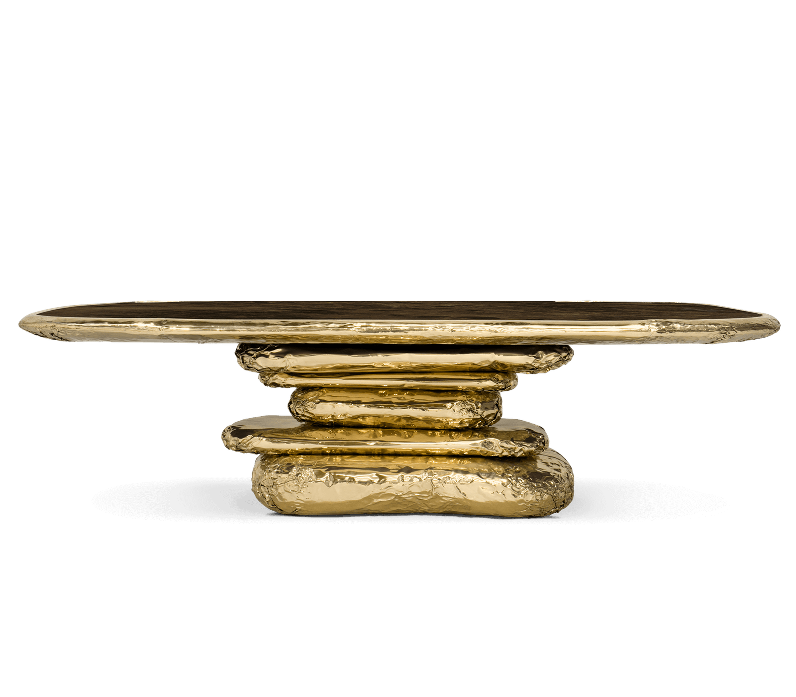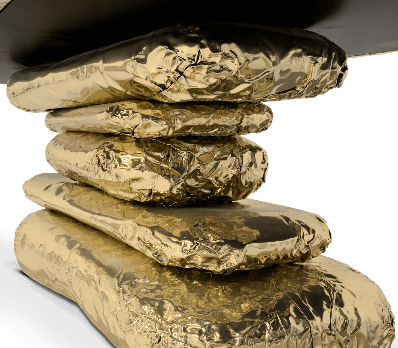 Finding inspiration in the prehistoric monument Stonehenge, positioned asymmetrically and composed by a striking variety of finishes and materials.