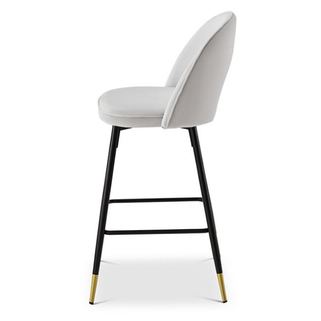 The Hoxton Bar Stool comes upholstered in a light grey matte velvet fabric and is finished with black legs with gold cups. The Hoxton Bar Stool can help you to achieve the perfect finish in any home or interior design project.