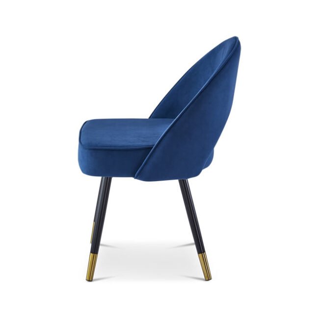 The Hoxton Dining Chair comes upholstered in a blue matte velvet fabric and is finished with black legs with gold cups. The Hoxton Dining Chair can help you to achieve the perfect finish in any home or interior design project. Sold in sets of 2.