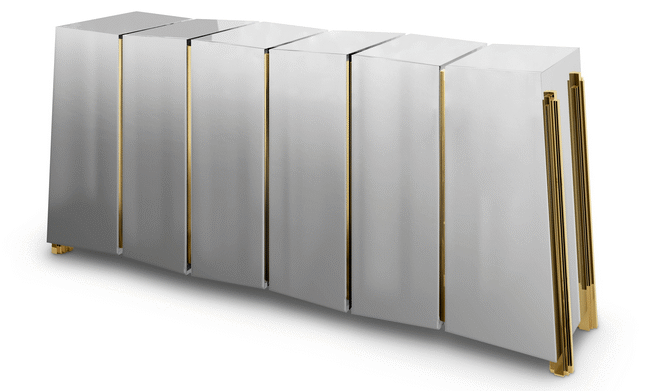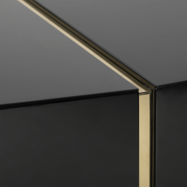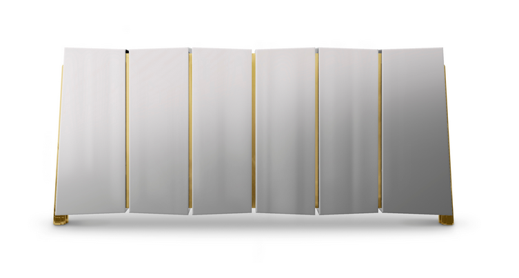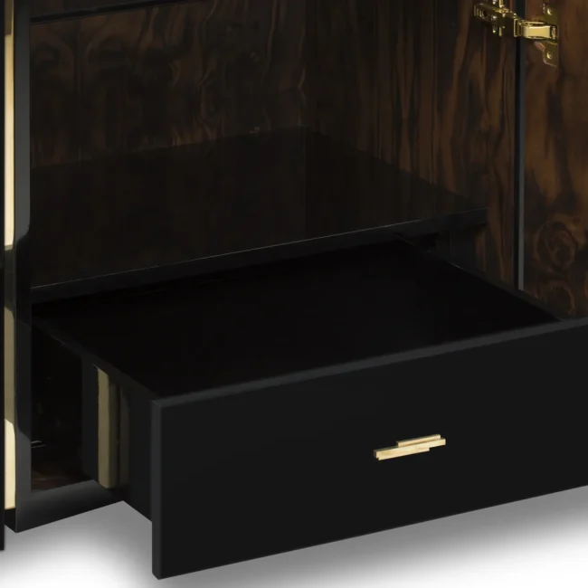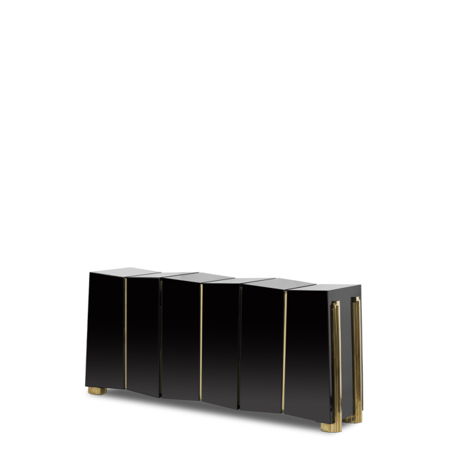 The Darian Sideboard draws inspiration from the power of the shield and sphere of protection, as well as the dynamic nature of its irregular shape. With precise knowledge of production techniques and materials, each with different specialties, from metalwork to wood carving, this piece showcases exceptional craftsmanship. It features a cluster of polished brass asymmetrical bars enveloping a wood structure in black lacquer, resulting in a captivating blend of artistry and strength.