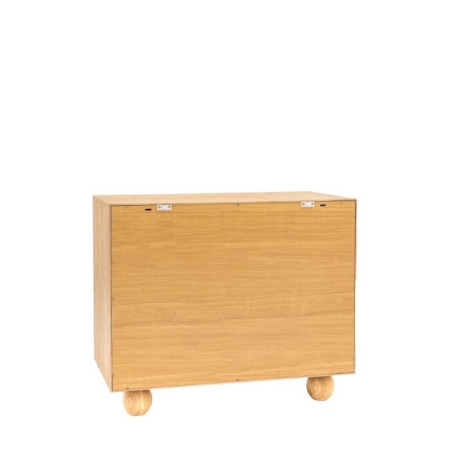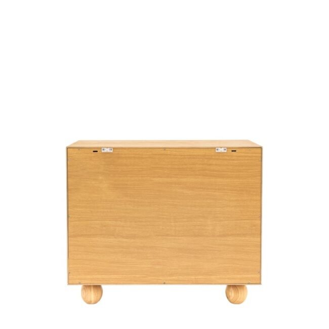 With a stand out geometric design and rounded feet, this 2 door cabinet combines a hint of retro design and with modern practicality. The oak and oak veneer cupboard will add a touch of on trend cool to your home, wherever you use it. Coordinating pieces also available.
