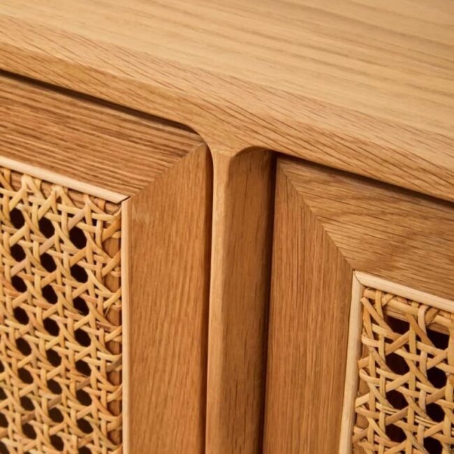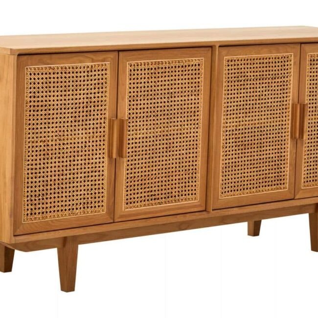 Hather 4 Door Natural Rattan And Oak Sideboard