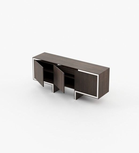 The Isis sideboard is a contemporary storage solution with a mid-century style twist. It features a shimmering frame and is a part of the Isis collection, bringing a touch of modern style to any dining room.