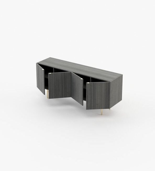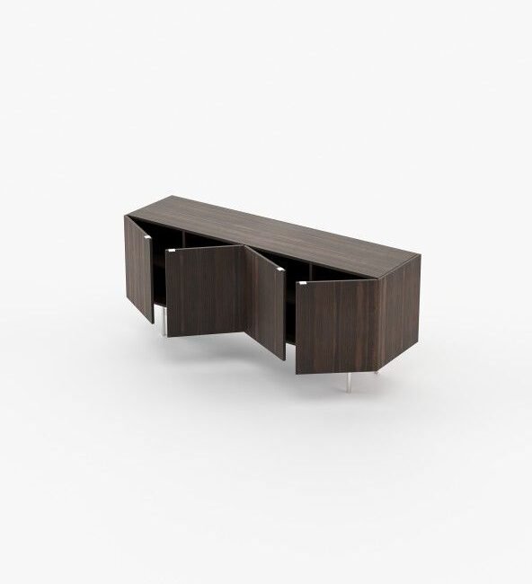 The Lewis sideboard is a contemporary piece with straight lines, handmade from wood and customisable in various materials, finishes, and dimensions.