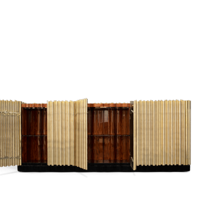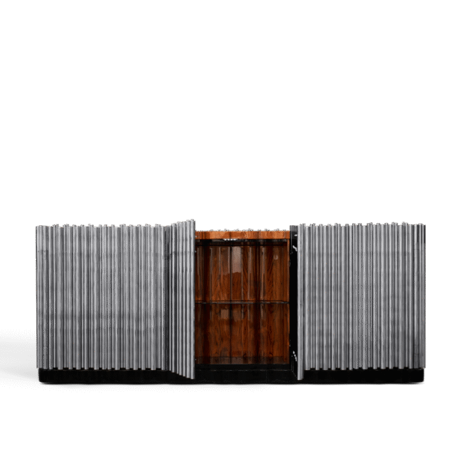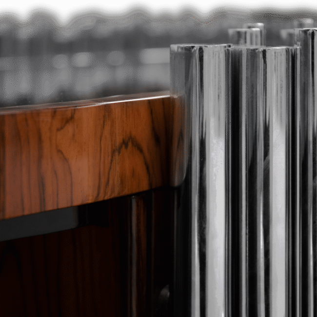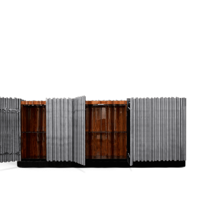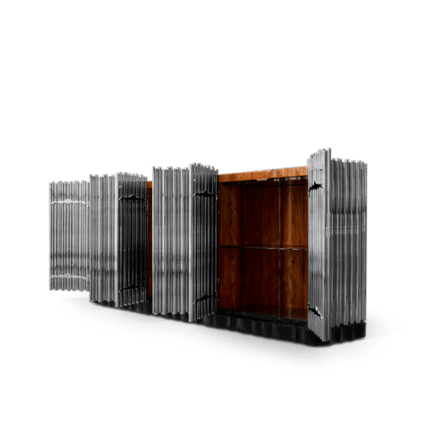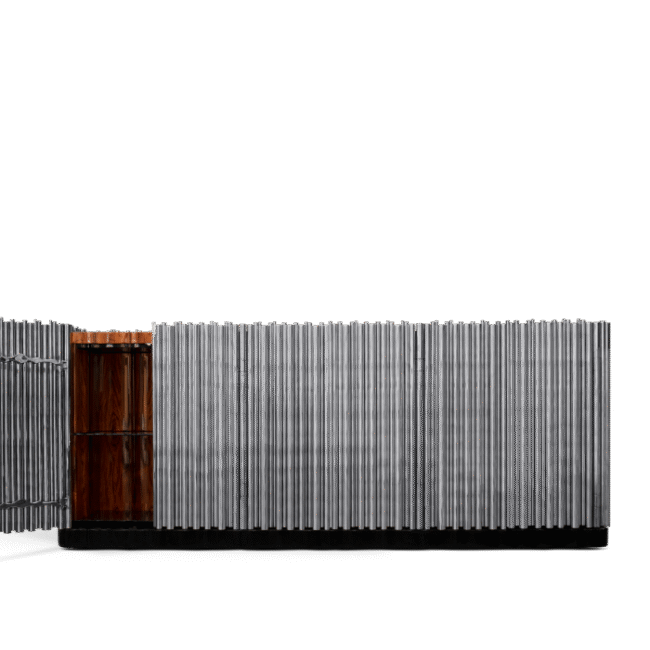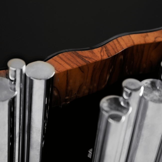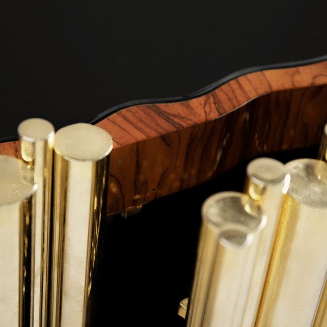 The Symphony sideboard is a statement piece whose modern design emulates the grandeur of classic church organ pipes. Synonym of innovation and flawless execution, the Symphony is one of the most exquisite pieces to grace the Limited Edition collection. It is methodically handcrafted by different master artisans, from specialized goldsmiths to the passionate wood carving craftsmen.