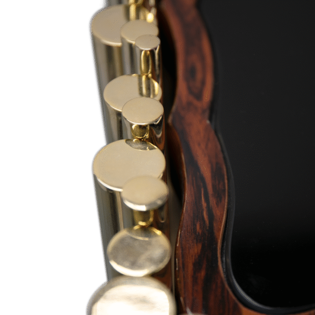 Gold plated brass tubes, Palisander veneer, Black lacquer.