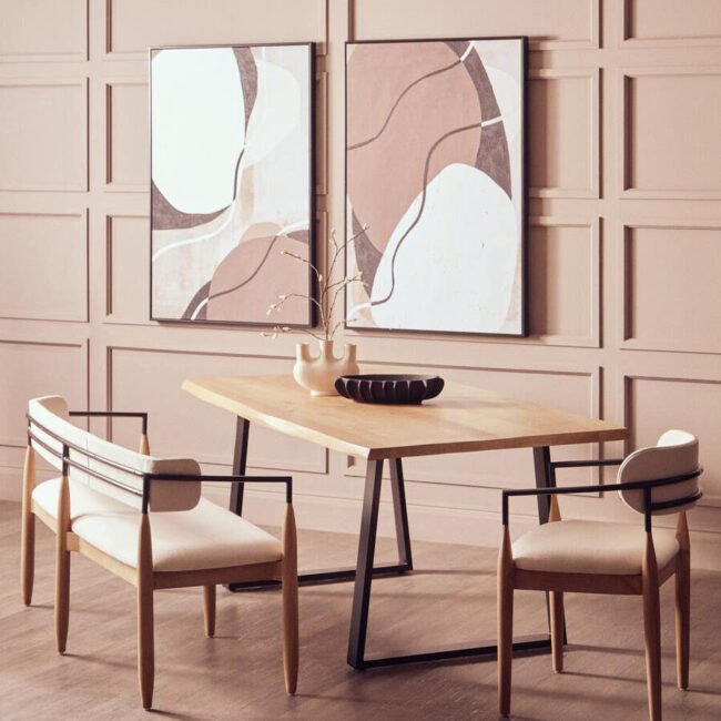 The Solo Mango Wood Live Edge Black Metal legs Dining Table boasts a handcrafted charm thanks to its natural finish mango wood top with live edge. The table is supported by black finish metal legs that offer stability and a contrasting touch to the top. Mango wood is highly sustainable due to its cultivation as a fruit tree. The wood used in this product comes from mango trees that have stopped bearing fruit. This allows the farmers to plant more trees.