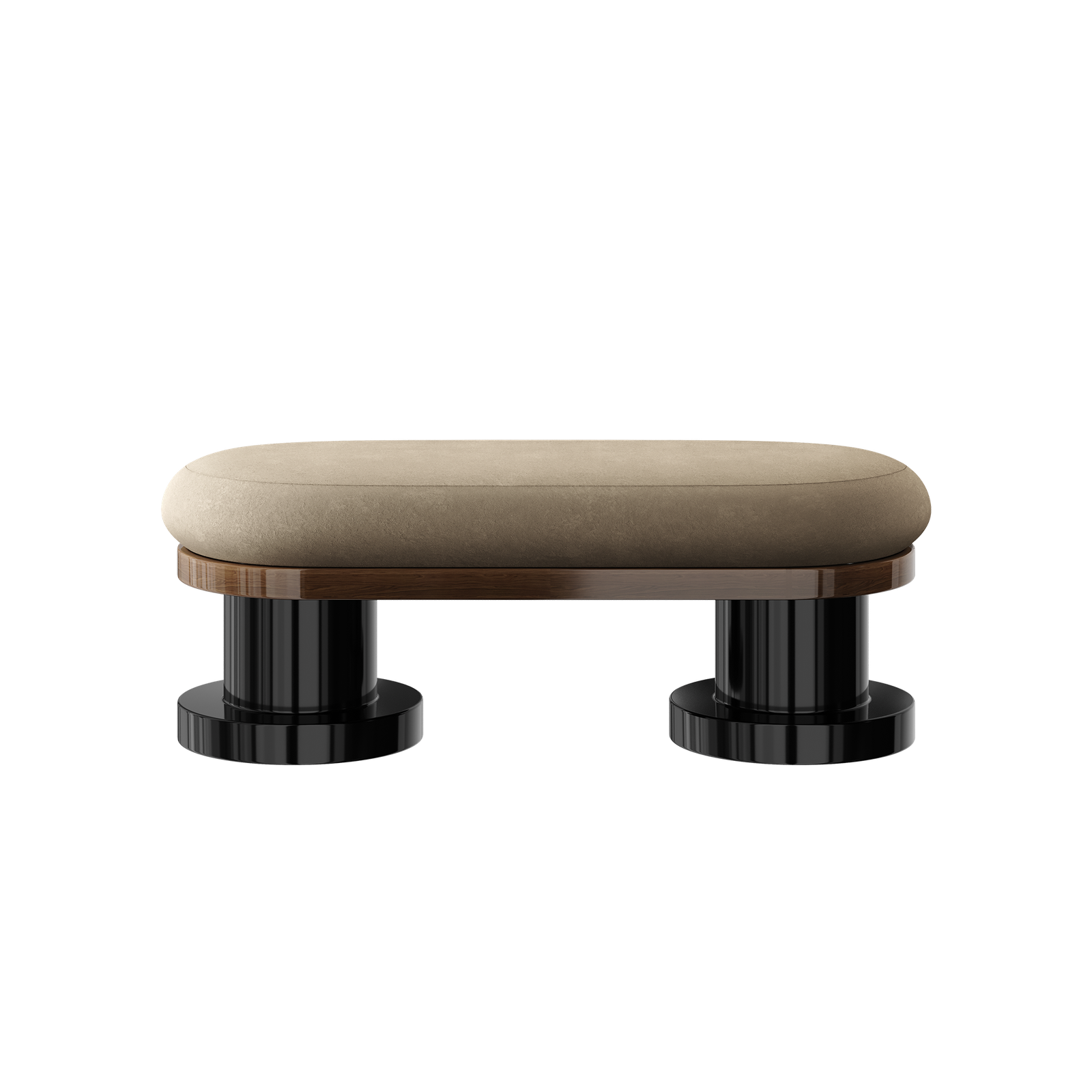 The bold round legs of this modern bench create a striking visual impact, making it an ideal choice for edgy hallways or cool living rooms. The Theo Bench offers style, comfort, and sophistication, perfect for modern interior design projects.