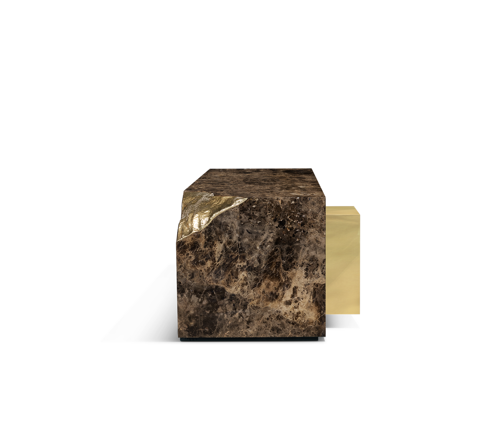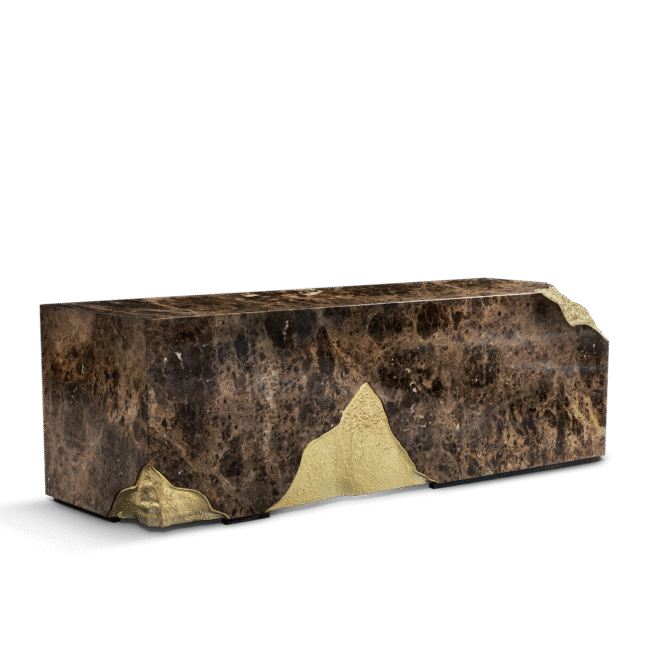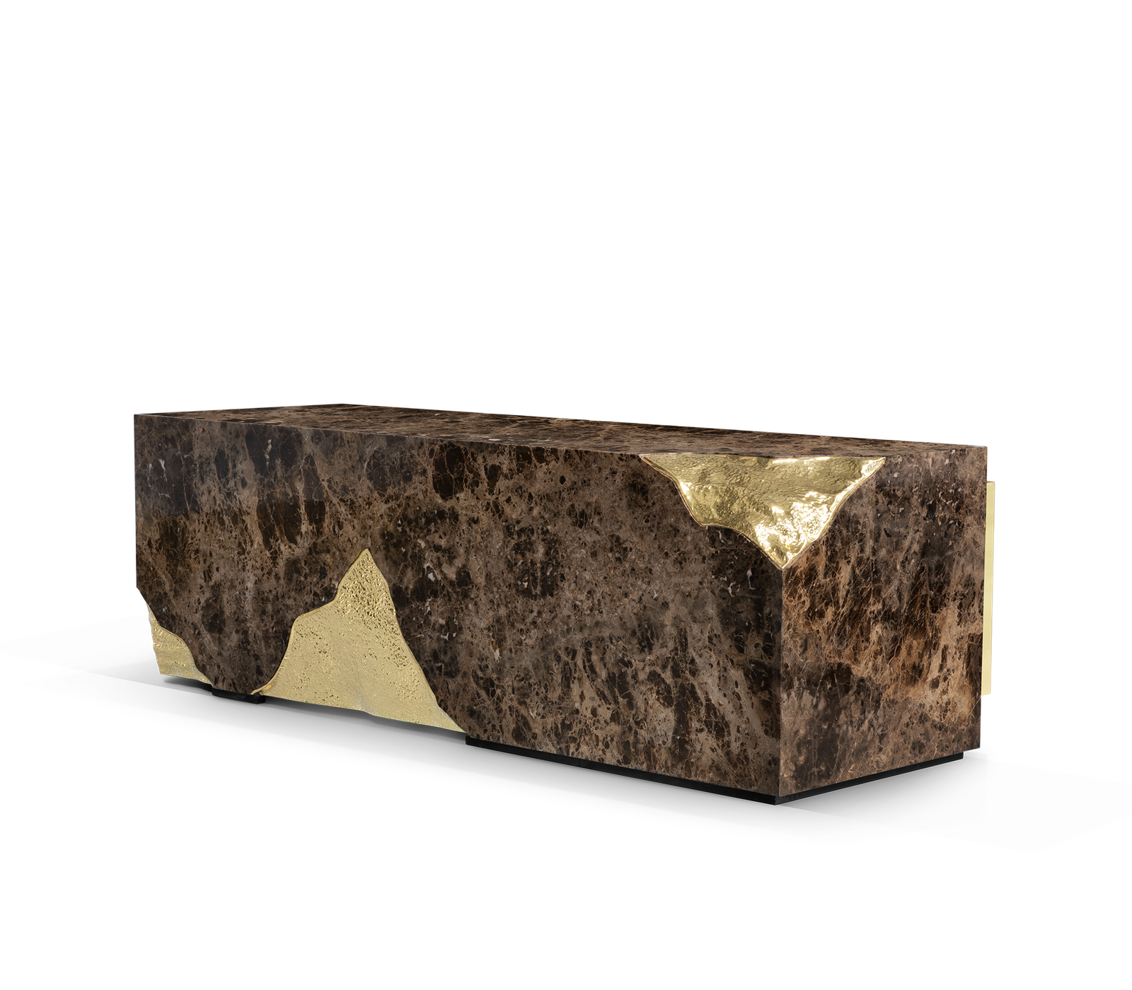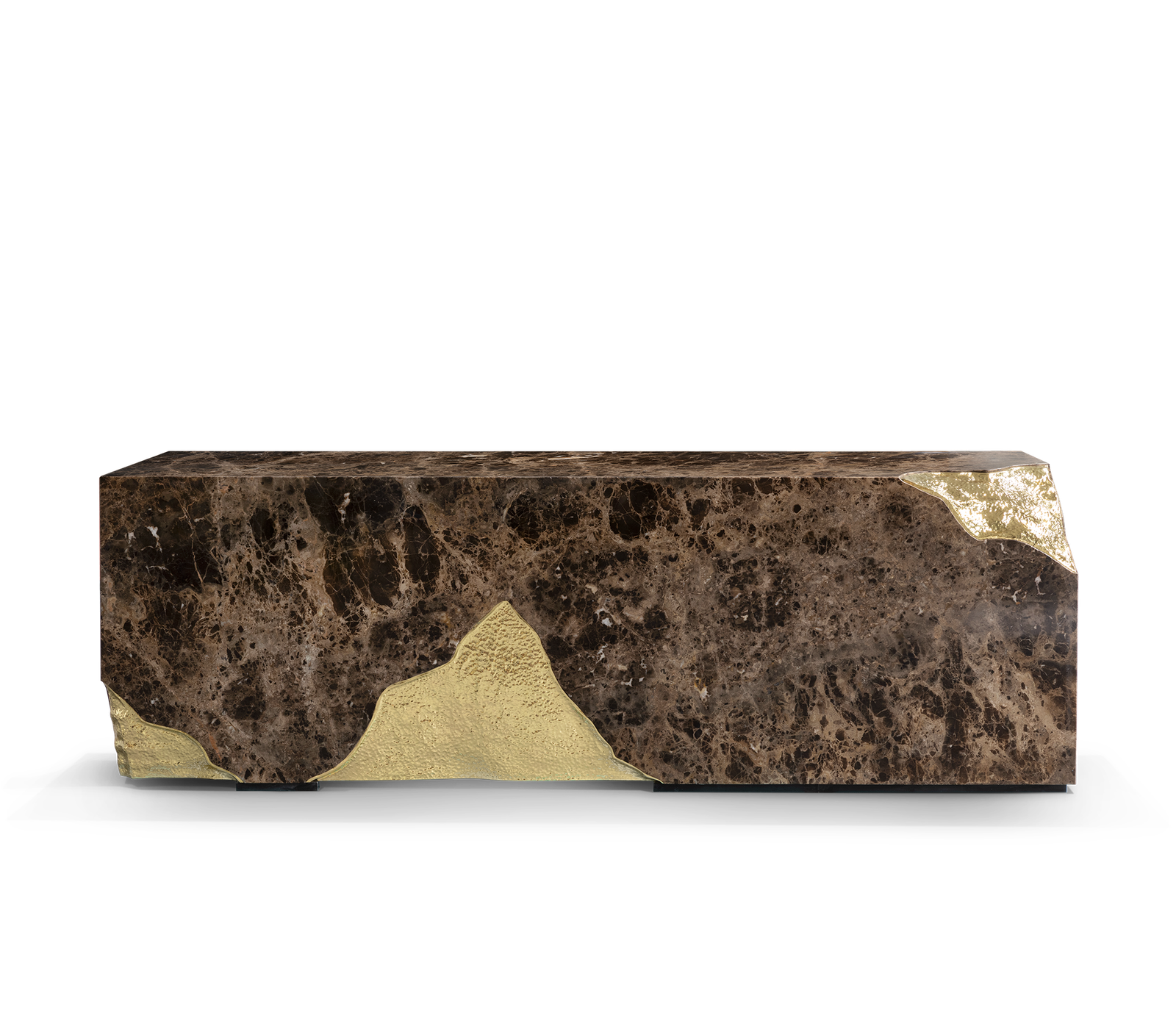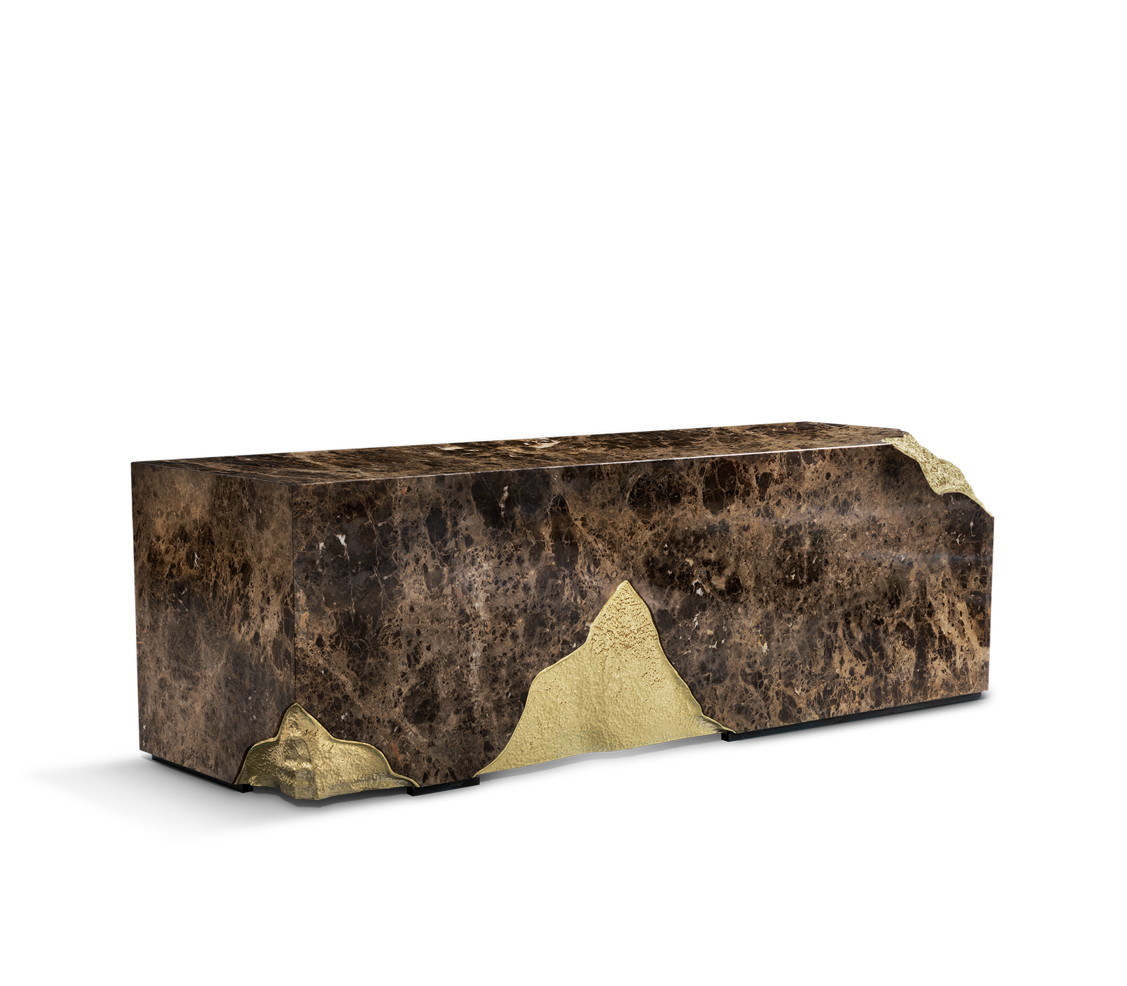 Polished Hammered Brass, Stainless Steel, Ebony Veneer.