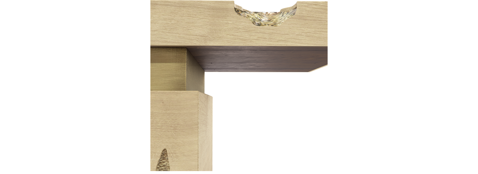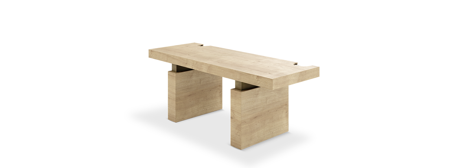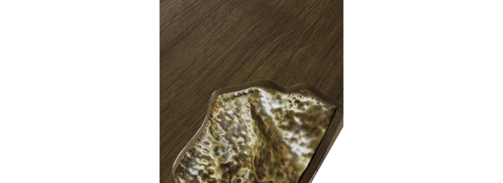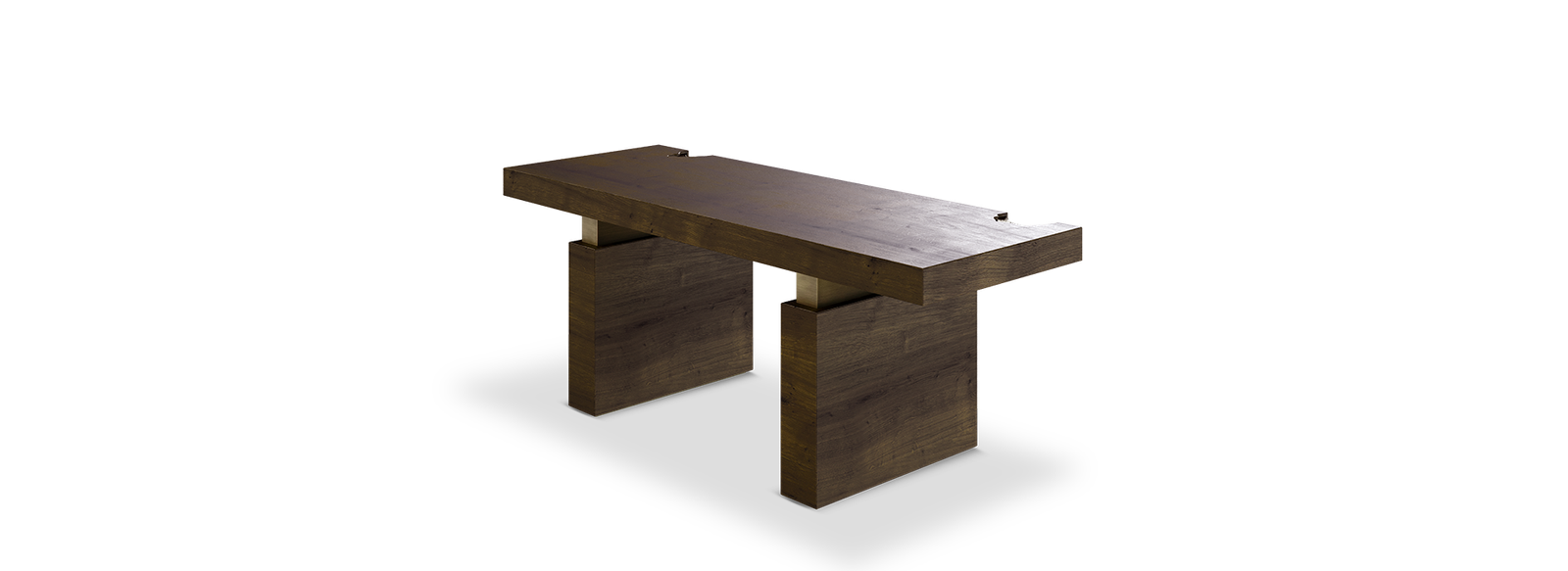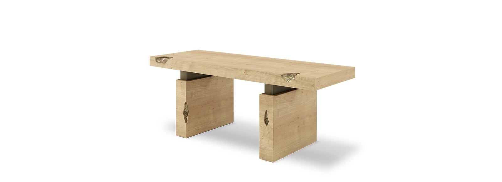 The Nougat desk is inspired by the shape and combination of coffee and chocolate, where the harmonious flavors combine perfectly for an overwhelming taste experience. Fulfilling your cravings for something rich, this high-end desk makes for a deluxe aesthetic the same way chocolate resonates with coffee. The cracks in aged brushed brass over the nero marquina marble in the top and legs, resemble the flavorful almonds emerging from the dark chocolate nougat. A desk to indulge in an elegant and modern office.