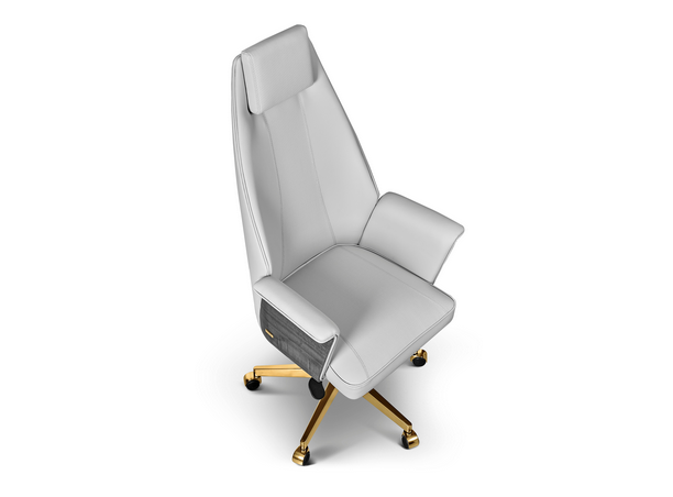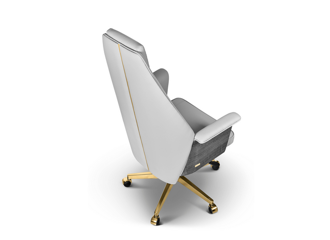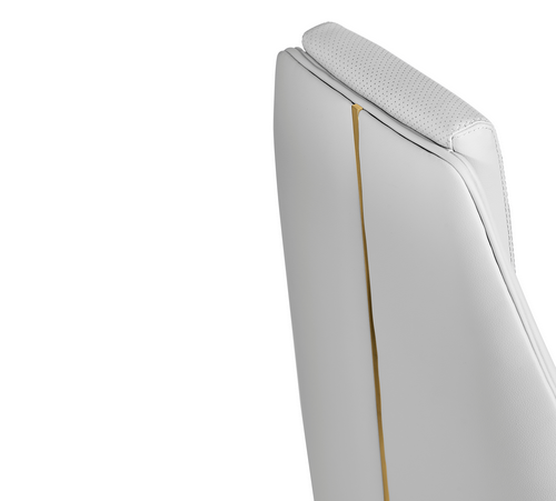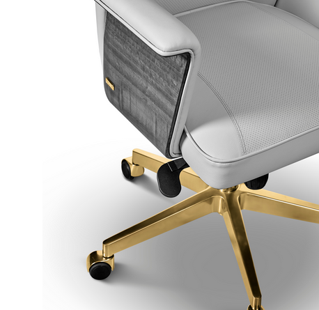 Body: Polished brass, Grey synthetic leather, Grey synthetic leather perforated & Glossy Eucalipto Frise Veneer