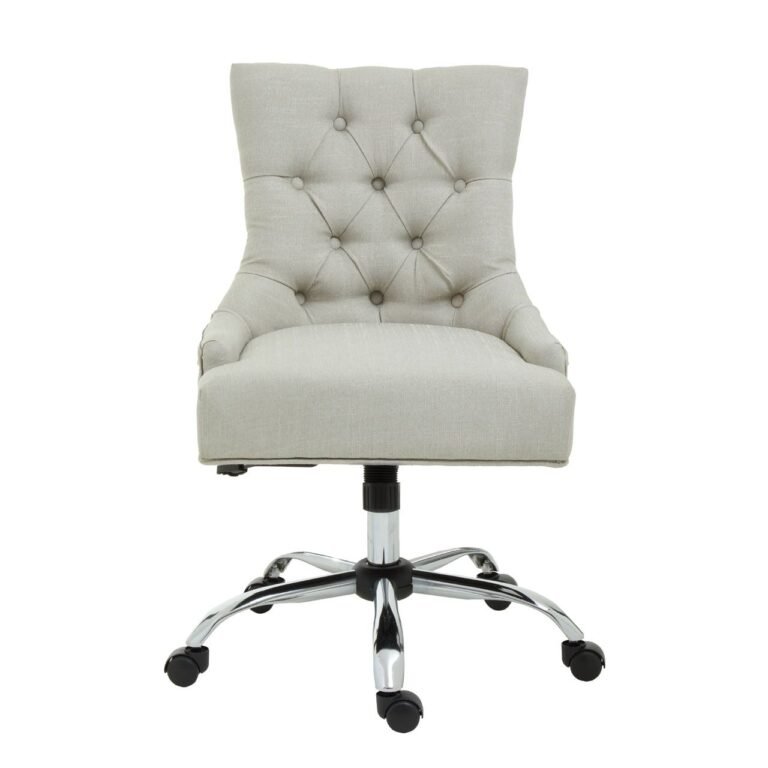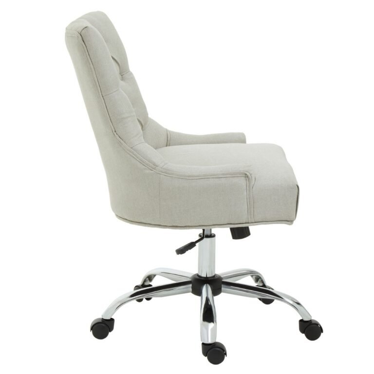 This Nita Natural Velvet Office Chair is upholstered skillfully with dense foam padding in natural velvet. The high-back showcases diamond pattern tufting and the 360-degree swivel base in chrome finish comes with five caster wheels to ensure swift mobility and support.