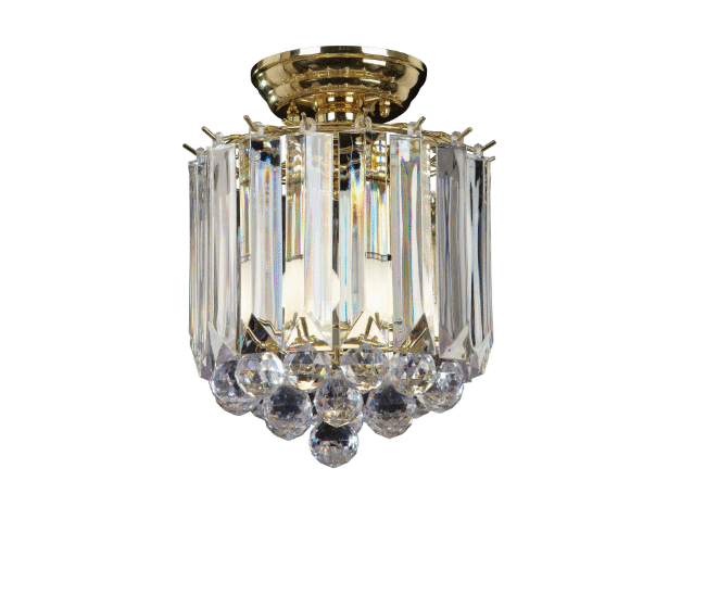 Finished in brass effect with clear acrylic crystal detailing designed to catch the light in the most beautiful way. This fitting is dimmable and suitable for use with LED lamps. Other fittings and finishes also available within the range.