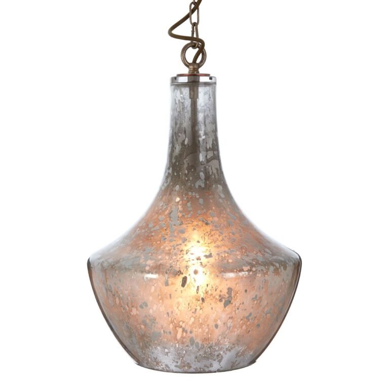 The Farina Tagine Shaped Pendant Light contemporary-style shade is created from mirrored glass with a striking antique finish. Harmonising with the glass shade, the light’s frame and ceiling attachment are created from iron with a weathered silver finish to create an oxidised appearance.