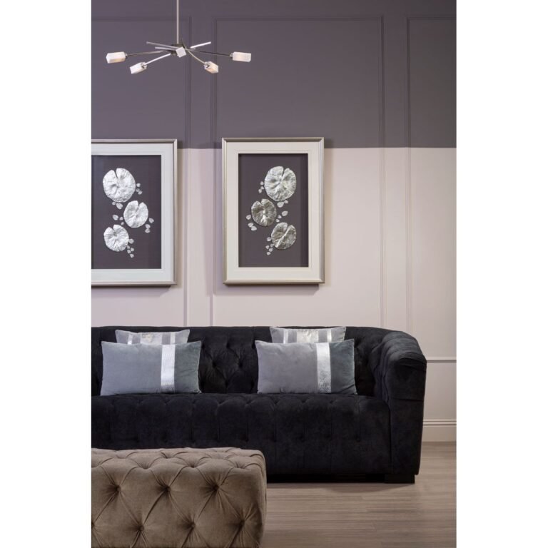 The Tabira Pendant Lamp features six frosted glass shades extending from gracefully curved iron arms. Suspended by a simple iron line, this lamp boasts a reflective silver finish, making it an ideal fit for luxe-inspired interiors. The elegant design and high-quality materials add a touch of sophistication to any space. Perfect for living rooms, dining areas, or entryways, the Tabira Pendant Lamp combines style and functionality, enhancing your decor with its soft, ambient lighting. This modern fixture stands out as a stunning focal point, effortlessly elevating the aesthetic of your home.