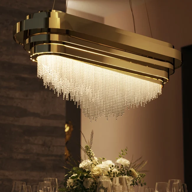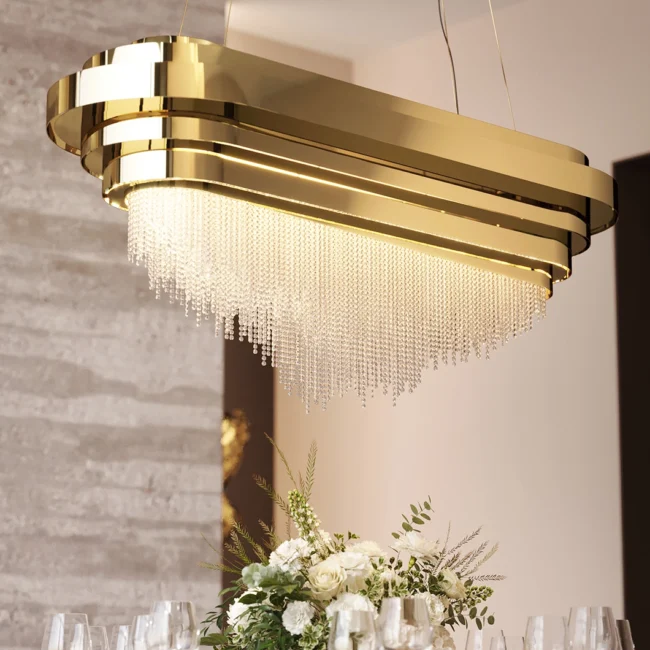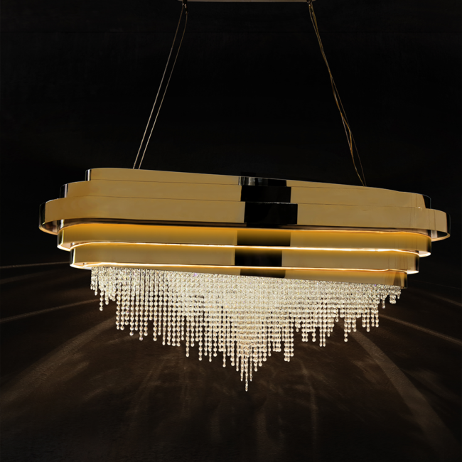 The Guggenheim Snooker Suspension is a design inspired by leading-edge architecture. This piece can galvanize diverse rooms and is the perfect complement to any innovative and luxurious design. Made with gold-plated brass and clear crystals and bold by definition, this piece is a promising focus of attention.MATERIALS