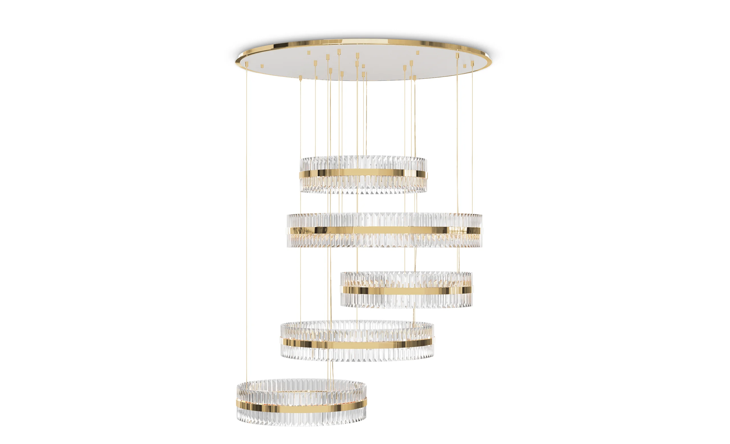 The Liberty Slim Chandelier introduces a new sense of sophistication to the collection with its unique design. Each round gold-plated brass fixture is complete with crystal glass and will leave a lasting impression on all who behold it in a grand foyer, a luxurious living room, or an opulent ballroom.DIMENSIONS