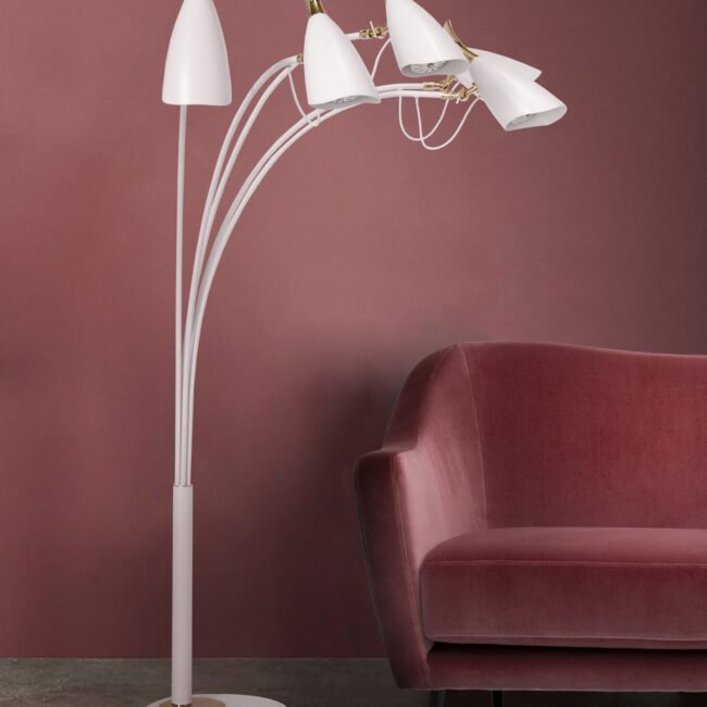DUKE 5 FLOOR: Duke Ellington has been an inspiration around the world to many artists and musicians. Therefore, DelightFULL’s designers have decided to pay a tribute to this iconic jazz musician and create Duke floor lamp. With a short silhouette and a single swing, Duke floor lamp is a retro-styled accessory for every single mid-century modern interior design. Each cone lamp shade is conducted by a brass arm and its counter-weight. This floor lamp is completing Dukes family of DelightFULL.