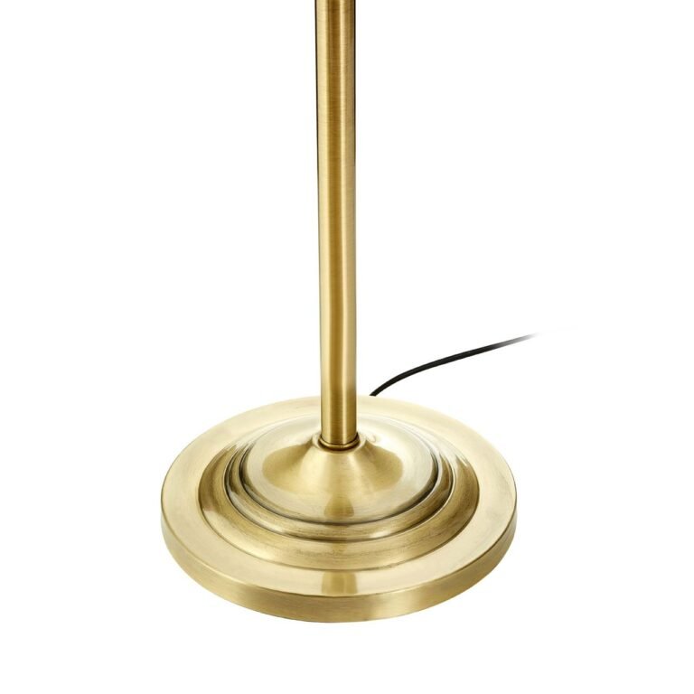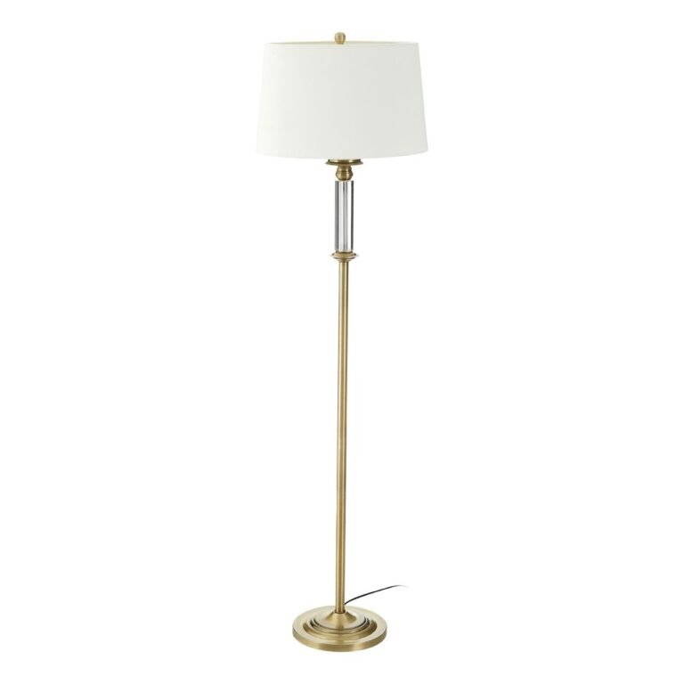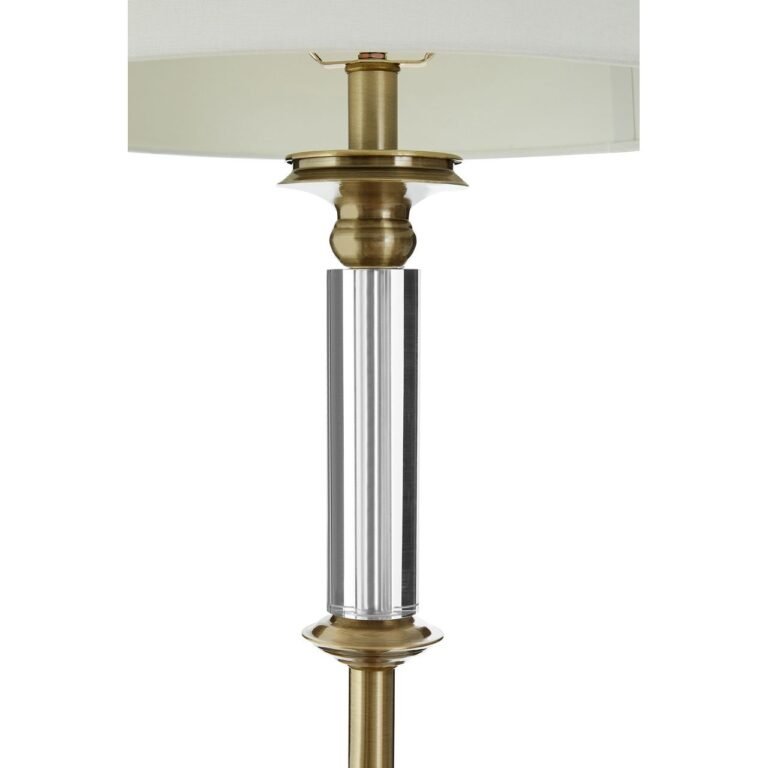 The Gradi Northern Floor Lamp can be used to grace boutique hotel-style interior design settings. Its base is made from gold coloured metal, with tiered detail that complements the rounded knop on the upper stem, and the crowning finial that emerges above the cream fabric shade. A column of clear crystal glass is suspended between.