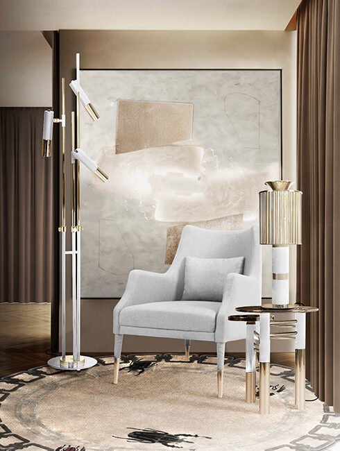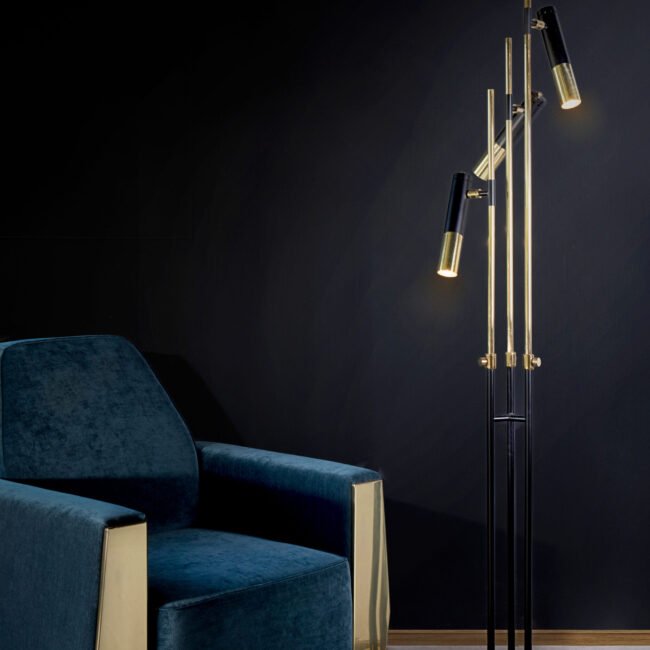 IKE FLOOR: Strict northern design rules meet a southern taste. Characterized by the rhythmic composition of its elements, minimalist shapes, and clean lines, Ike floor lamp is the result of a collaboration between a Dutch designer and DelightFULLs designer’s team. Light up your Nordic style living room, bedroom or office with this 70 minimalist floor lamp. With three changeable lamp shades with glossy black and gold plated finishes, this Scandinavian floor lamp can light multiple areas, making it the perfect addition to your mid-century modern interior. All in all, Ike is an elegant brass floor lamp full of refinement and modernity, providing a warm and inviting tone to any room.