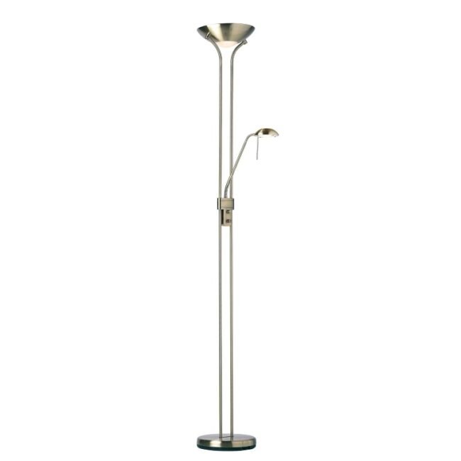 A tall 2 light floor lamp with a double stand supporting an uplighter as well as an adjustable branch holding a reading lamp. Has a satin brass finish and is complete with a double rotary dimmer switch. Other colour options available