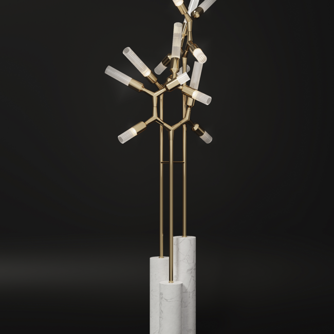 Modern and unique, the Shard Floor Lamp is part of our Shard family and has the power to provide a fine and exclusive look with a strong presence. Made of brass, marble, and crystal glass, this floor lamp will make any room memorable with its unique lines.DIMENSIONS