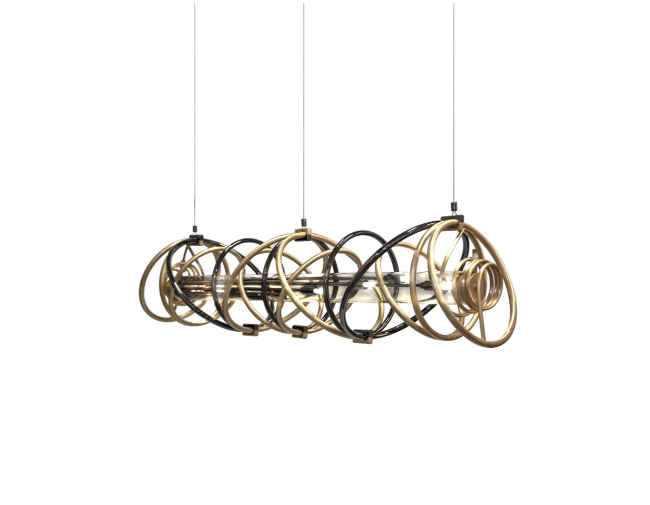 The Galaxy Suspension with its structure mixed in golden brass and black nickel is a perfect lighting fixture for creating a grand reveal over a fierce living room sofa or a large dining area.