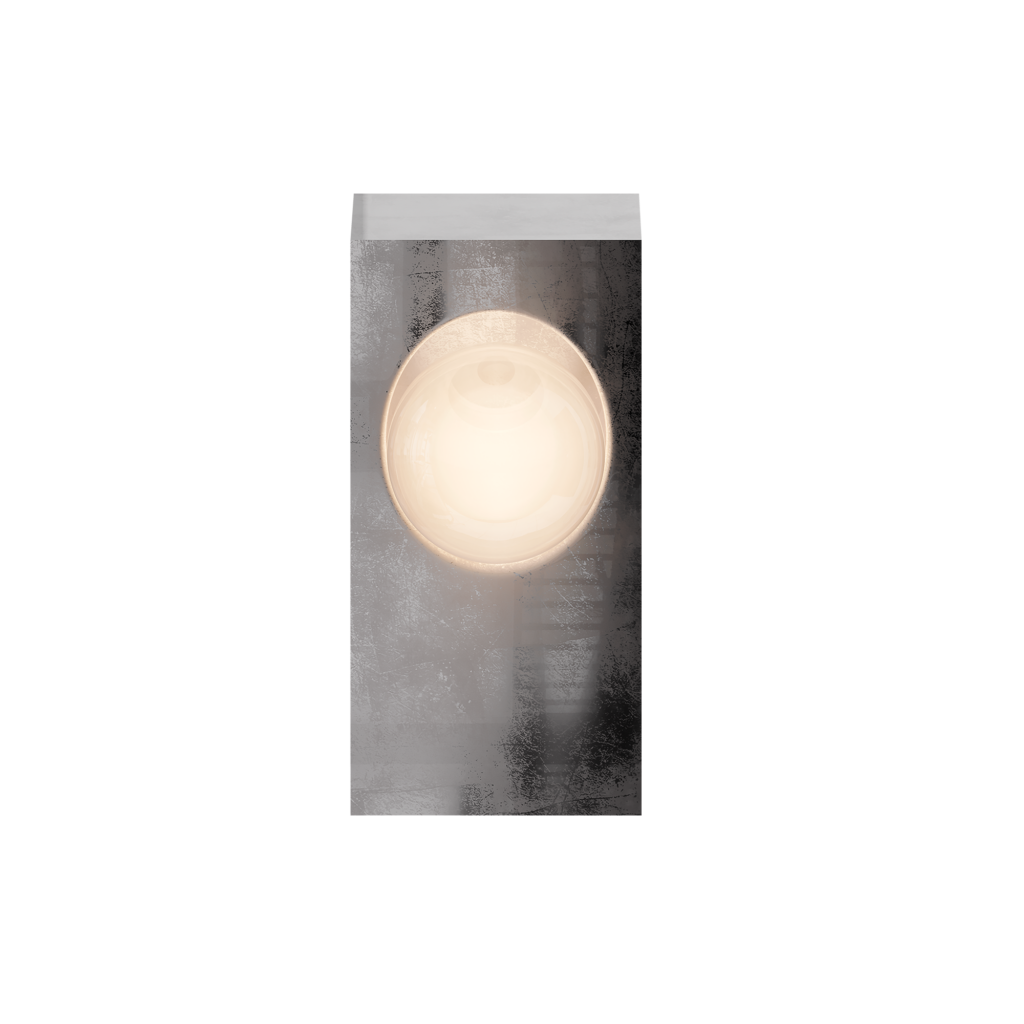 The Icaro Table Lamp Silver is a bold expression of brutalist and contemporary design. Its unconventional form challenges traditional aesthetics, resulting in a sculptural masterpiece enhanced by hand-applied silver leaf.