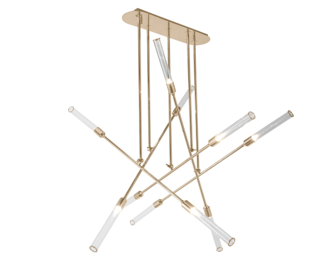 As the encouragement came from the architecture of buildings, the iconic collection recreated graphic pattern’s ideas on the chandelier. The Collection’s highlight? For the determined and adventurous customers, as it gives an impression of brave, strong and unique motives of geometrical silhouettes in the space. These futuristic lighting fixtures symbolically portray the development of modern design and city architecture. The outstanding lighting design can be applied to any interior from modern classic style to contemporary, or mid-century modern. Feel the dynamism of this suspension as the simple geometry of the brass elements complements the refinement of the interior and permits to explore a new kind of energy and charisma.