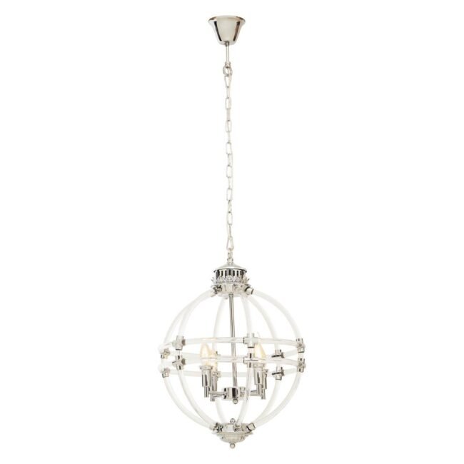 Avon Pendant Light In Clear Acrylic And Chrome Finish: A clear acrylic coat on the external hoops of this unique light with chrome finish creates an orb look, making up this unique style light fixture. This beautiful globe style shaped chandelier is the picture of old world charm and traditional style.