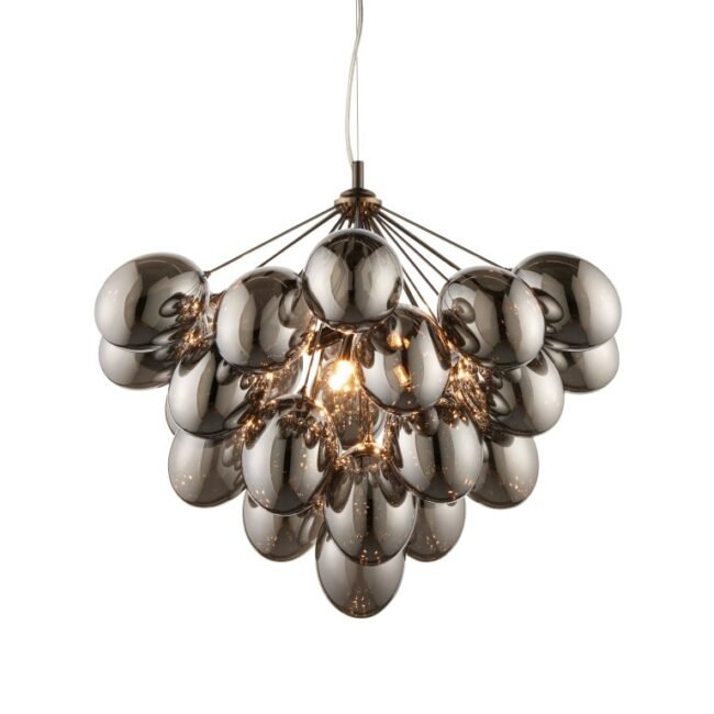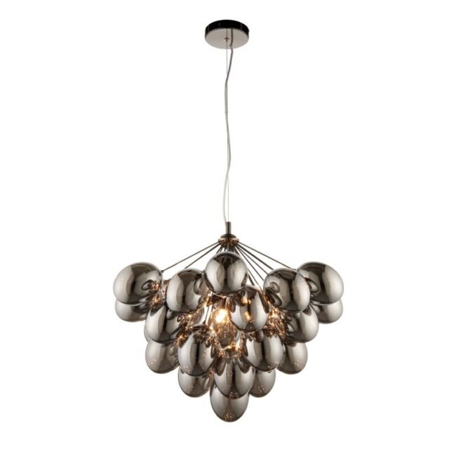A stunning addition to modern interiors, the stunning black chrome plated Infinity pendant creates amazing light patterns through multiple electro-plated dark chrome glass shades.