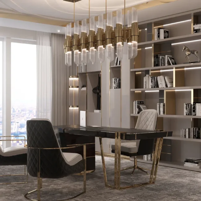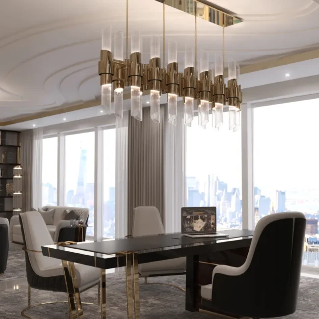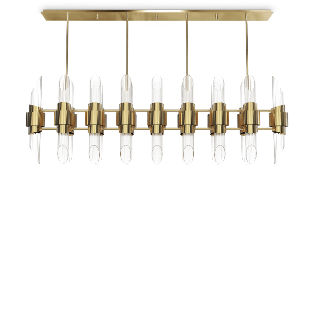 The Tycho Rectangular Suspension Lamp takes its inspiration from the water reflection of the most unusual planetarium in the world. This luxury suspension light is perfect for dining rooms, billiard rooms, and offices. Following our high-quality materials, it’s made with gold-plated brass and combined with ribbed crystal glass.MATERIALS