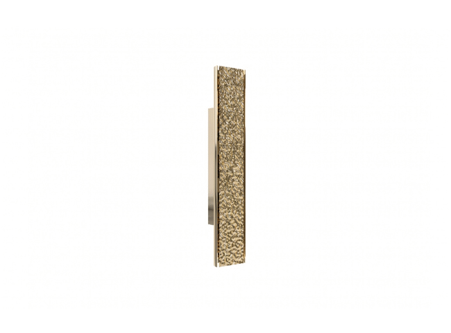 Composed of a rectangular shaped gold-plated brass plate – hammered by hand with modern handcraft technics – placed in the center of a semi-circle that allows a warm light to spread through the slight space in between this wall light design.