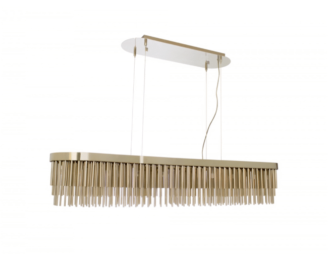 Streamline Suspension Snooker: This piece was conceived to be distinctive and stand out for its design, becoming the perfect fit for curated interiors that combine a diversity of styles. This elegant suspension features long gold plated brass tubes that give the design a whole exclusive and deluxe look, setting another level by its distinctive appearance. This recipe of rich materials and sleek lines inspired by art-deco architecture make the Streamline suspension desirable. Streamline Suspension Snooker