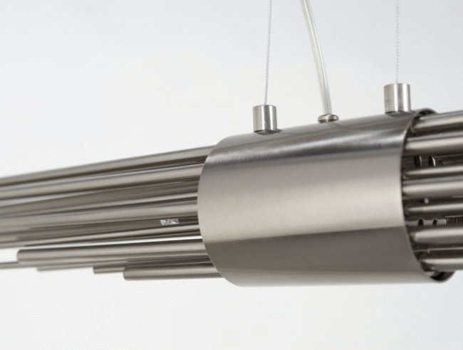 This piece was conceived to be distinctive and stand out for its design, becoming the perfect fit for curated interiors that combine a diversity of styles. This elegant suspension features long gold plated brass tubes that give the design a whole exclusive and deluxe look, setting another level by its distinctive appearance. This recipe of rich materials and sleek lines inspired by art-deco architecture make the Streamline suspension desirable.