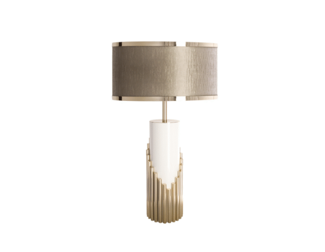 This piece was conceived to be distinctive and stand out for its design, becoming the perfect fit for curated interiors that combine a diversity of styles. This elegant table lamp features a white lacquered structure with gold plated brass tubes that give the design a whole exclusive and deluxe look, setting another level by its distinctive appearance. This recipe of rich materials and sleek lines inspired by art-deco architecture make the Streamline table lamp desirable. Streamline Table Lamp II